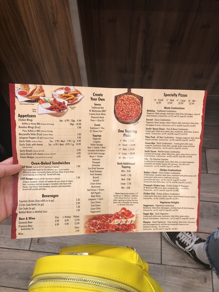 The menu boasts an impressive array of mouthwatering options, emphasizing both specialty and customizable pizzas. Notable highlights include the Snowy Alps Mini Pizza, rich with creamy garlic white sauce and a delightful mix of toppings, and the hearty Pike's Peak Mini Pizza, which is an indulgent meat lover's dream. Additionally, vegetarian aficionados will appreciate the Olympus Pizza, heaped with fresh veggies and feta.
