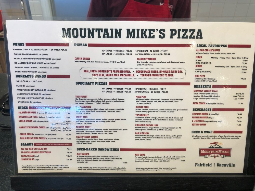 Mountain Mike's Pizza Fairfield Menu (Update 2025)